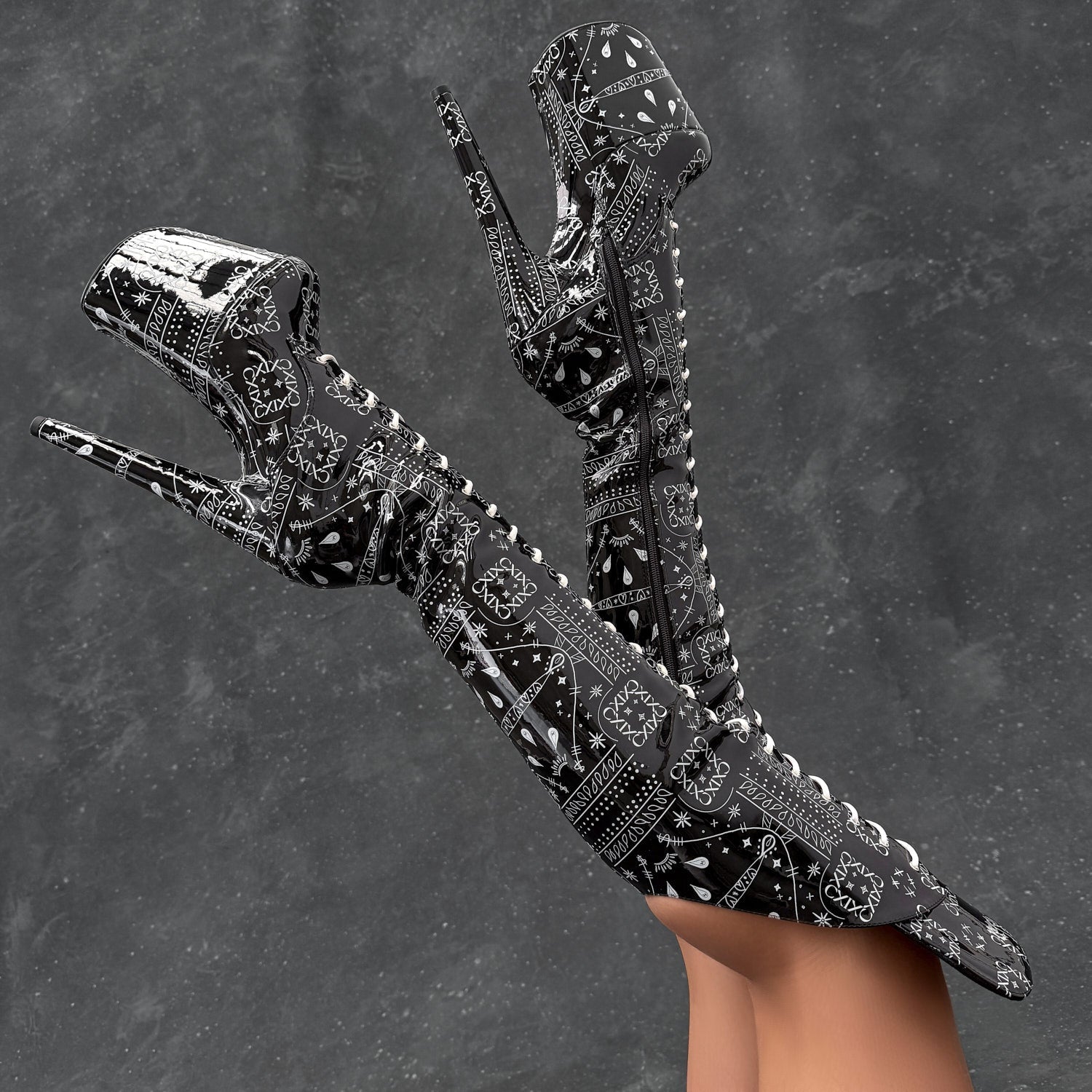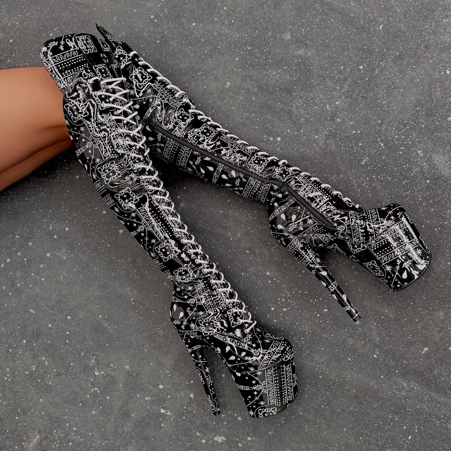 9”s and back lace-ups (excl. thigh highs) run slightly smaller, if unsure size up