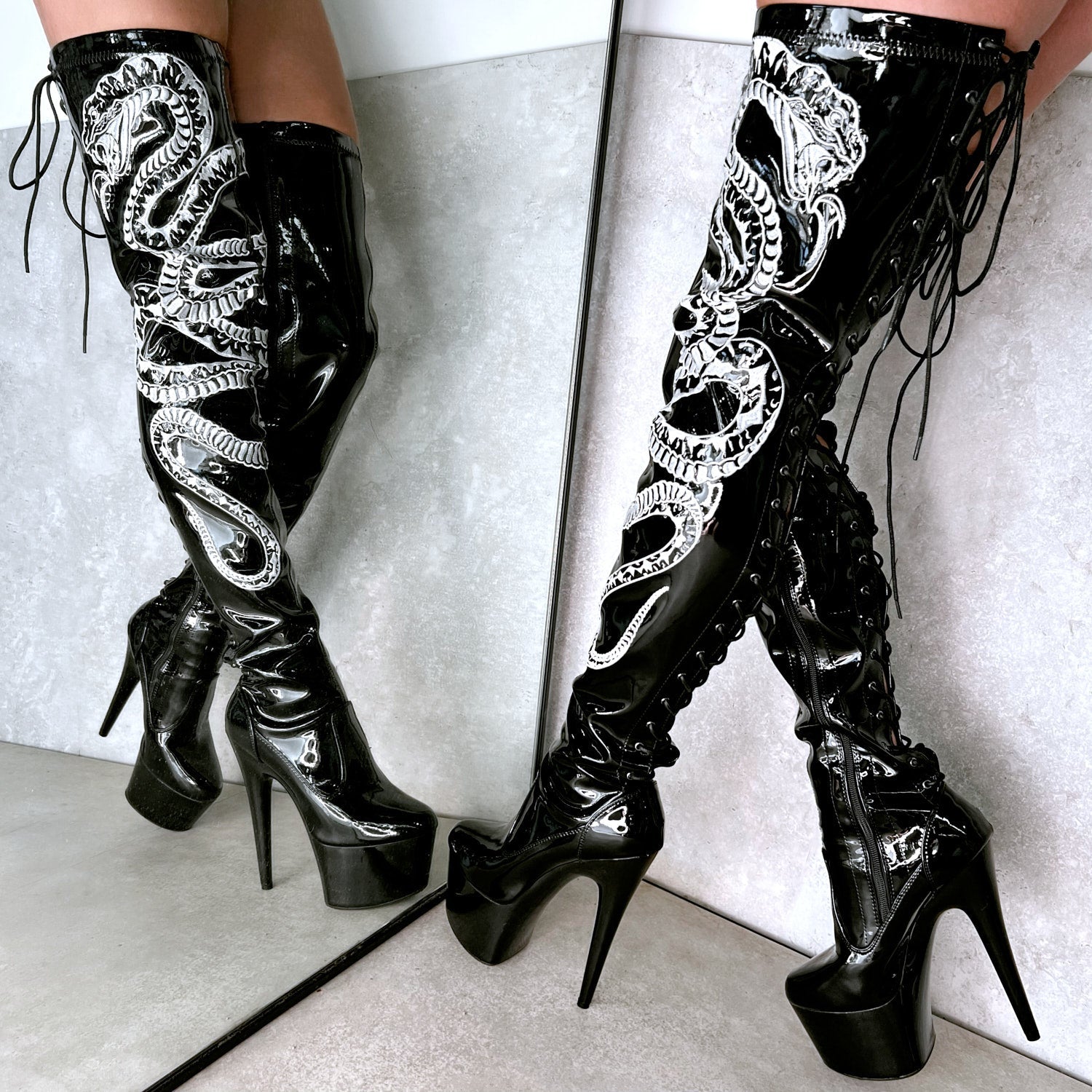Grip: Viper Boot Black with White Thigh High - 7INCH