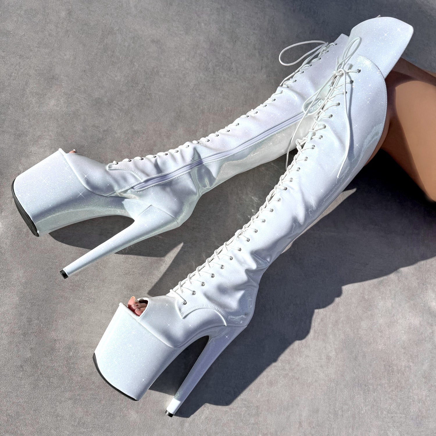 Grip: The Glitterati - Snow Kween Over Knee Open Toe Boot - 8INCH